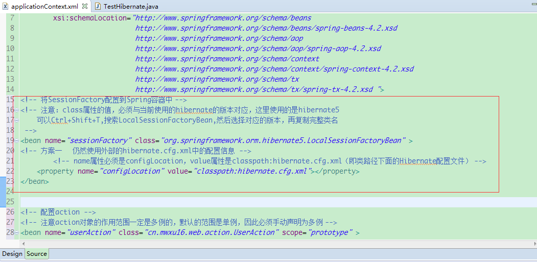 方案一:仍然使用外部的hibernate.cfg.xml文件中的配置信息